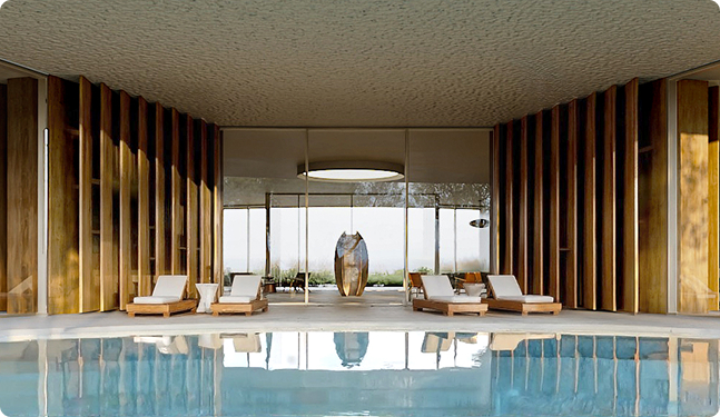 Expansive courtyard terraces and outdoor pavilions dissolve the boundary between inside and out, while private suites and discreet service areas ensure a non-intrusive way of living.