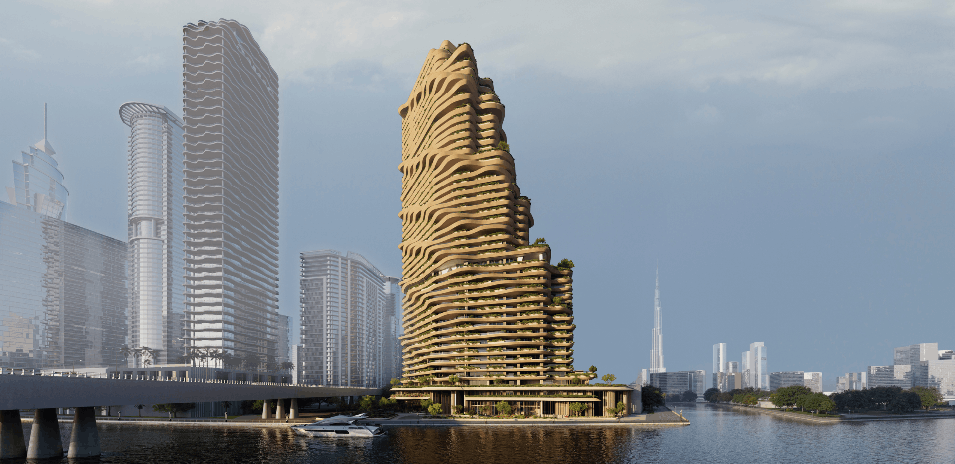 Rising from the banks of the Dubai Canal, Wedyan is an organic retreat immersed in the city.